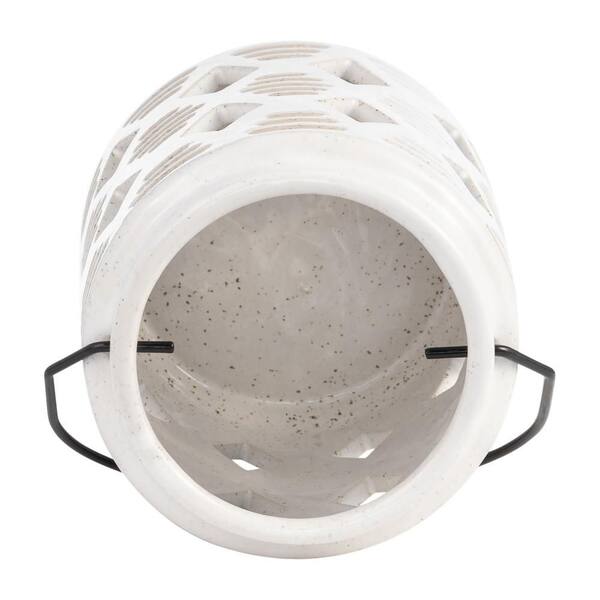 6 in. Ivory Ceramic Cylinder Lantern with Cut-Out Diamond Design