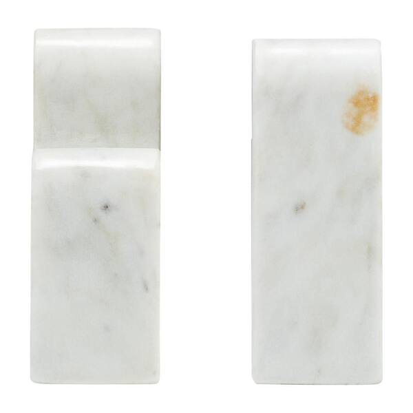 6 in. White Marble Geometric Abstract Swirl Design Bookends (Set of 2)
