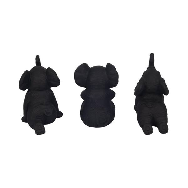 6 in. x 6 in. Black Resin Stone Look Yoga Posed Elephant (Set of 3)