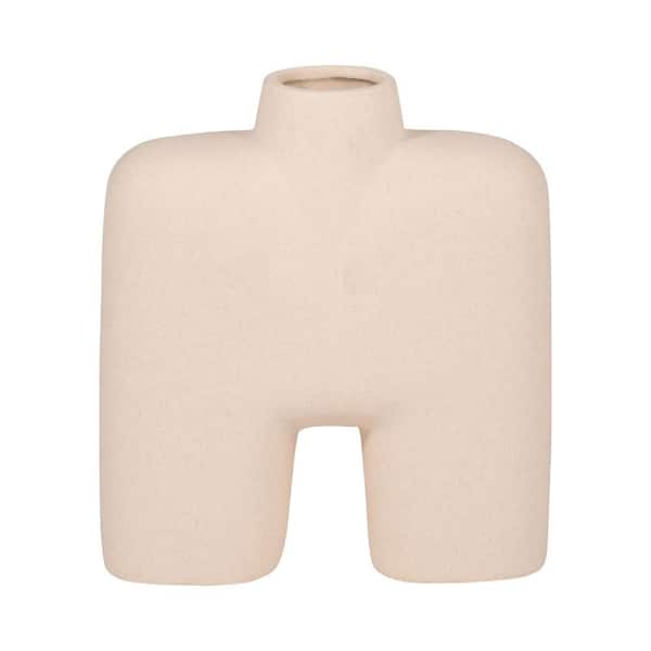 7 in. Ivory Ceramic Geometric Solid Square Shape Decorative Vase
