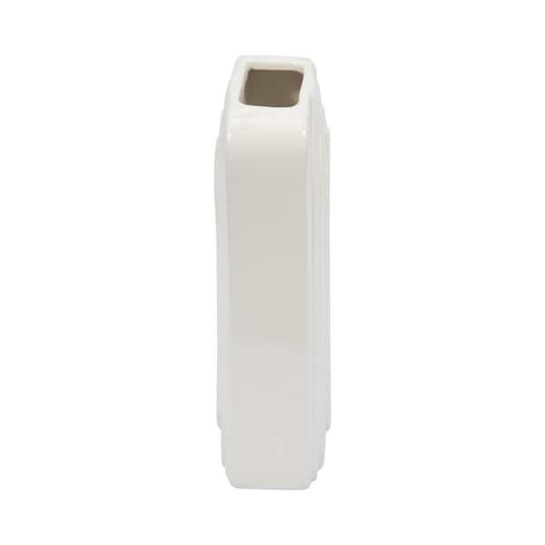 7 in. Pearl White Stoneware Geometric Decorative Vase with Etched Arch