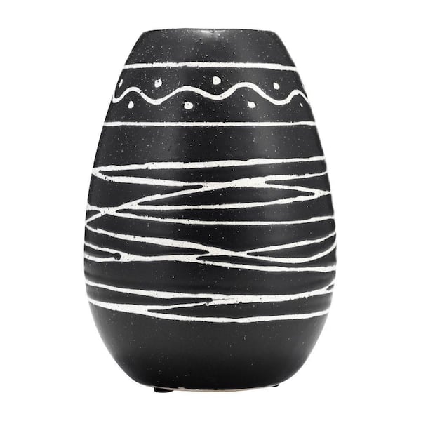 8 in. Black Ceramic Round Decorative Vase with Hand-Painted Tribal Design