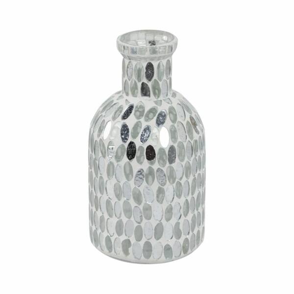 8 in. White Glass Round Glam Mosaic Detailing Decorative Vase