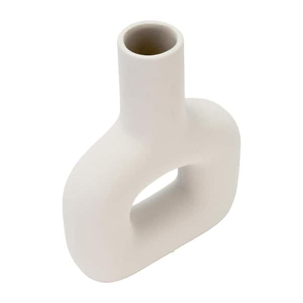 8 in. White Stoneware Geometric Open Cut-Out Decorative Vase