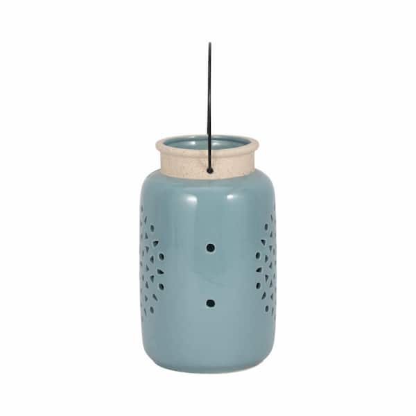 9 in. Blue Ceramic Flower Cut-Out Lantern