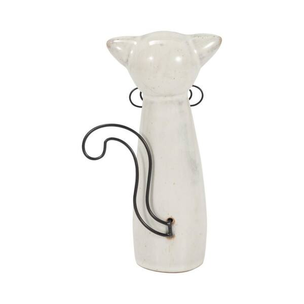 Beige 4 in. x 7 in. Stoneware Ceramic Standing Cat with Glasses Figurine