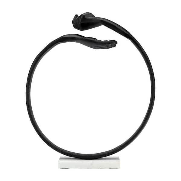 Black 13 in. x 15 in. Metal Hand Ring On Base Sculpture