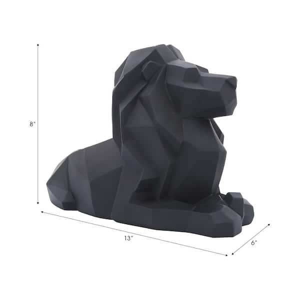 Black 13 in. x 8 in. Resin Laying Lion Figurine