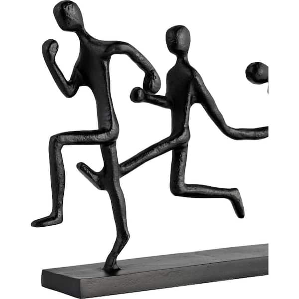Black 13 in. x 9 in. Metal Wood Abstract 3-man Running Sculpture