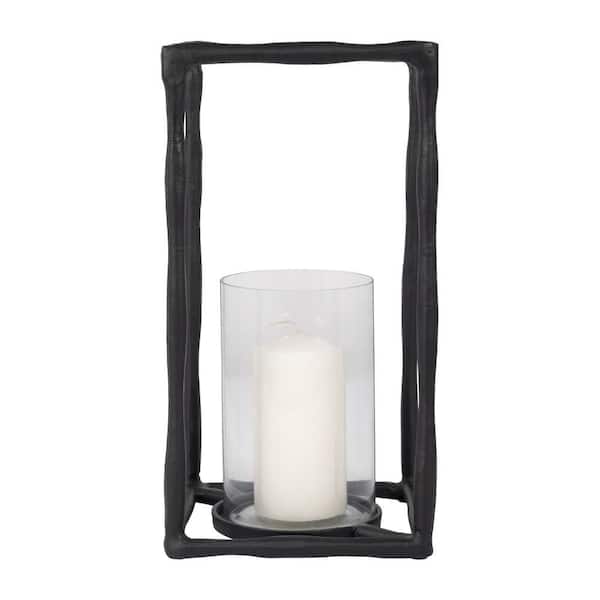 Black 16 in. Metal Open Square Frame Hurricane Candle Holder