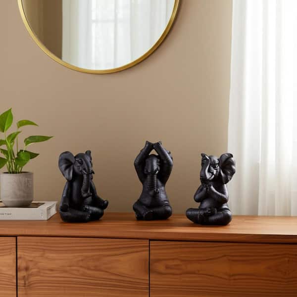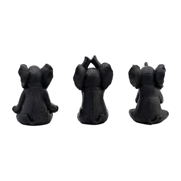 Black 6 in. x 8 in. Resin Yoga Elephants Figurine