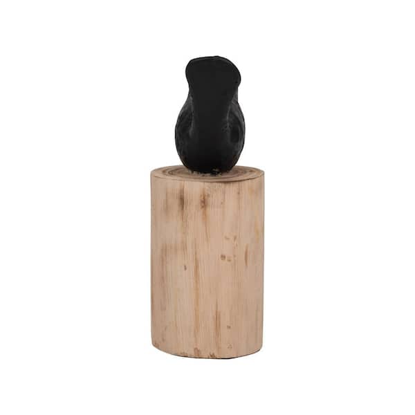 Black 6 in. x 9 in. Wood Bird Perched On Log Figurine