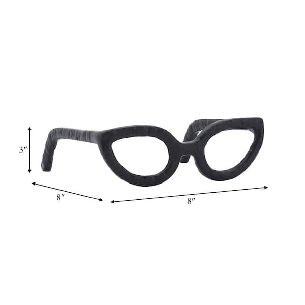 Black 7 in. x 3 in. Metal Abstract Cat Eye Glasses Sculpture