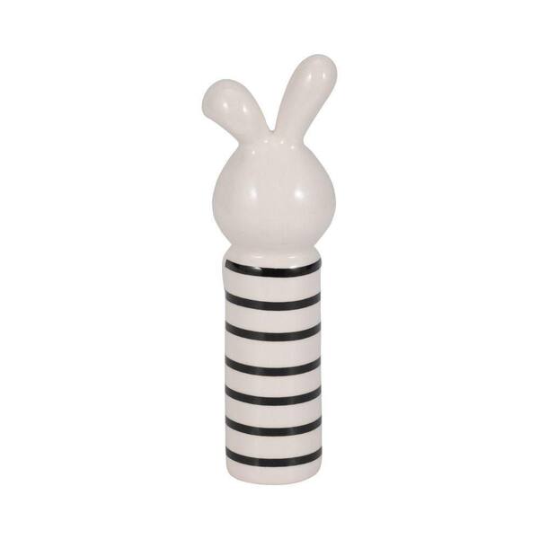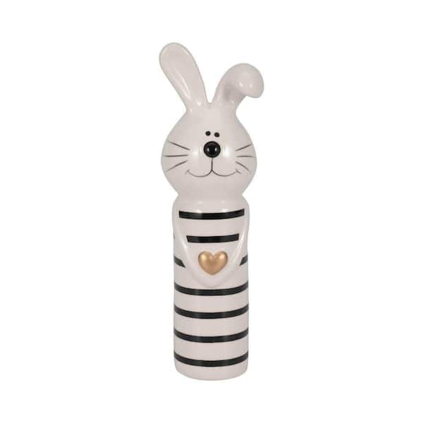 Black and White 2 in. x 7 in. Ceramic Striped Bunny with Gold Heart Figurine