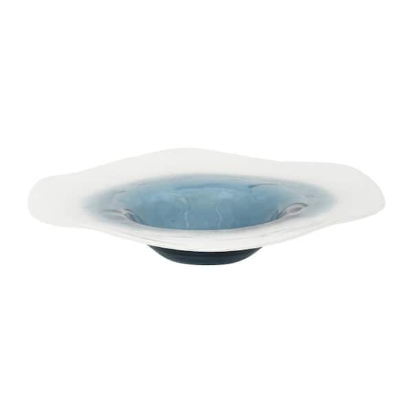 Blue 12 in. x 2.5 in. Glass Coastal Marbled Waters Decorative Bowl