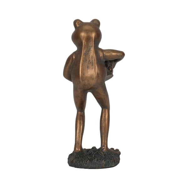 Bronze 5 in. x 10 in. Frog with Watering Can Garden Statue