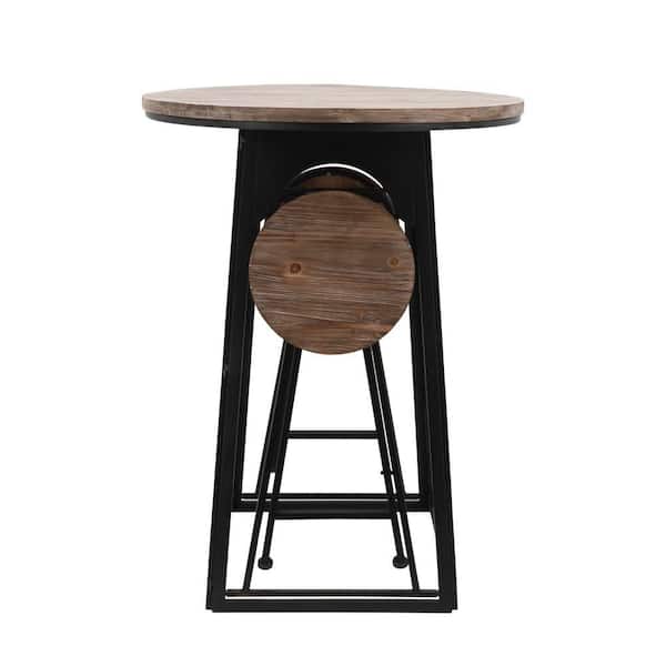 Brown 30 in. Round Wood Accent Table with Attached Folding Chairs
