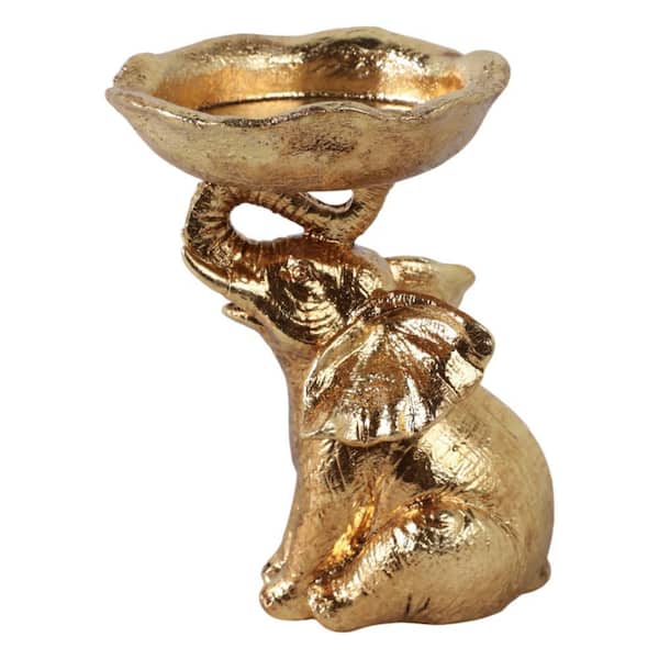 Gold 4.25 in. x 6 in. Resin Round Bowl On Elephant Trunk Decorative Bowl