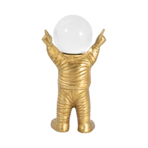 Gold 4.75 in. x 9 in. Metal Astronaut W Crystal Orb Head Figurine