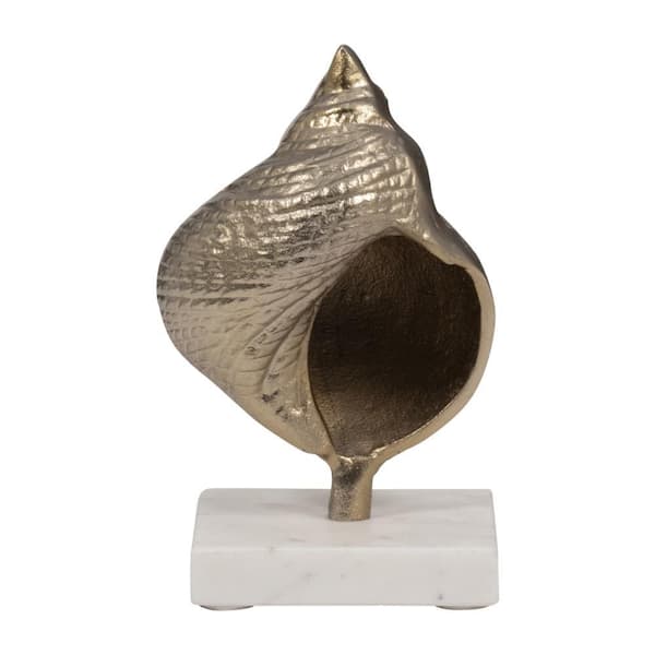 Gold 5 in. x 7 in. Metal Banded Shell On Marble Base Figurine