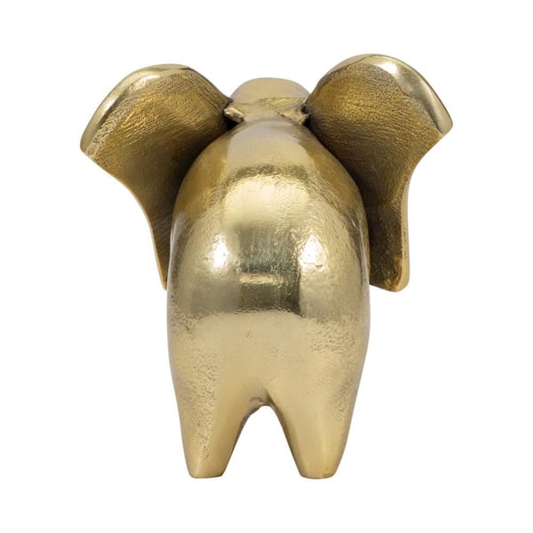 Gold 6.25 in. x 4.75 in. Metal Boho Trunk Up Elephant Figurine