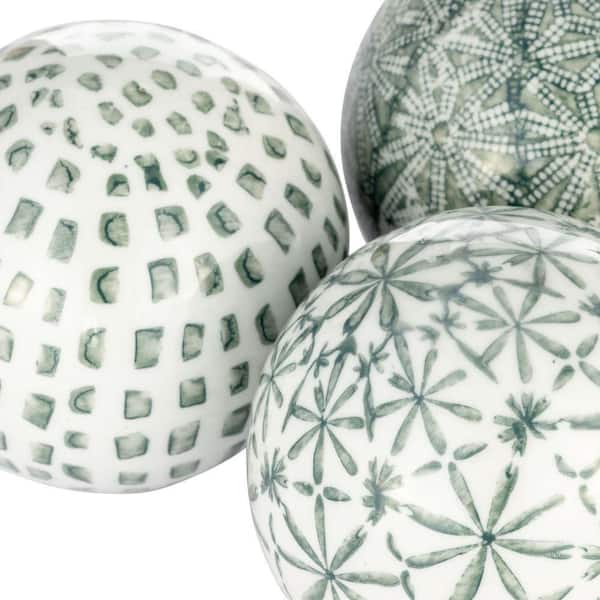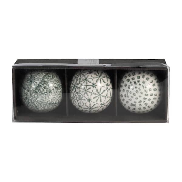 Green/White 4 in. Stoneware Boxed Painted Orbs (Set of 3)