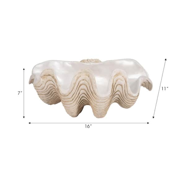 Ivory 16 in. x 11 in. Resin Coastal Pearlized Clam Shell Decorative Bowl