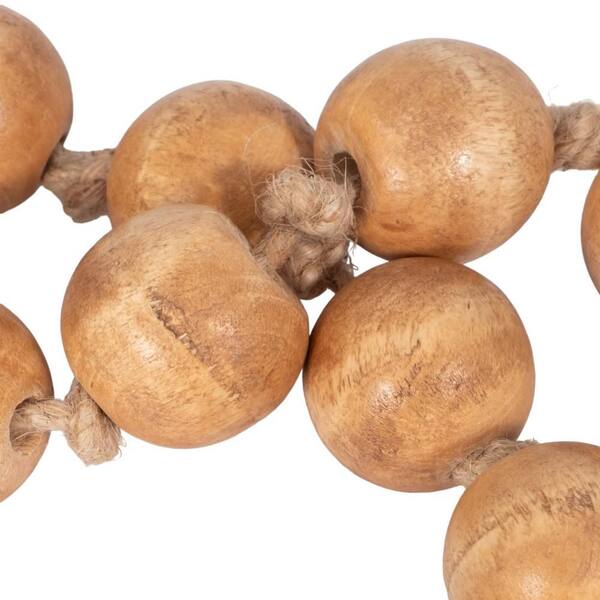 Natural Brown 32 in. x 1.25 in. Wood and Jute Decorative Beaded Garland with Tassel