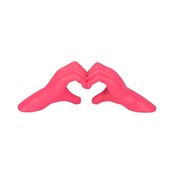 Pink 15 in. x 5 in. Resin Heart Hands Figurine