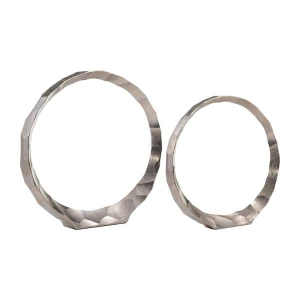 Silver 16 in. x 16 in. Metal Round Hammered Decorative Rings (Set of 2)