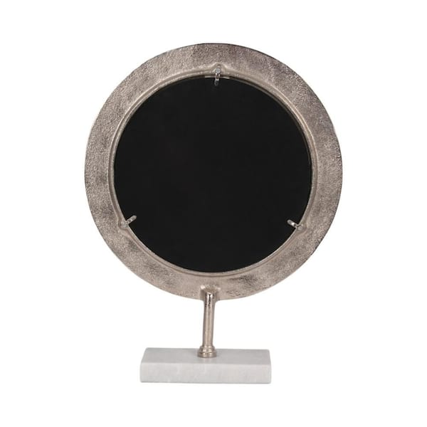 Silver 16 in. x 21 in. Metal Hammered Mirror on Stand Sculpture
