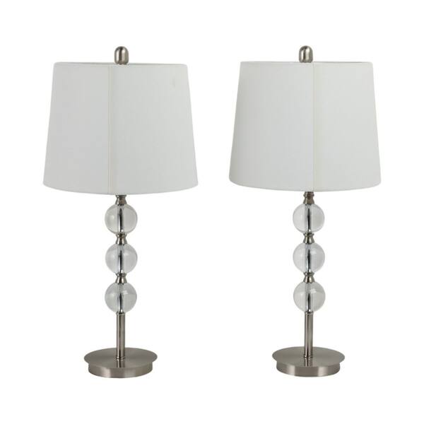 Silver 27 in. Crystal Table Lamp Set and White Linen Shade (Set of 2)