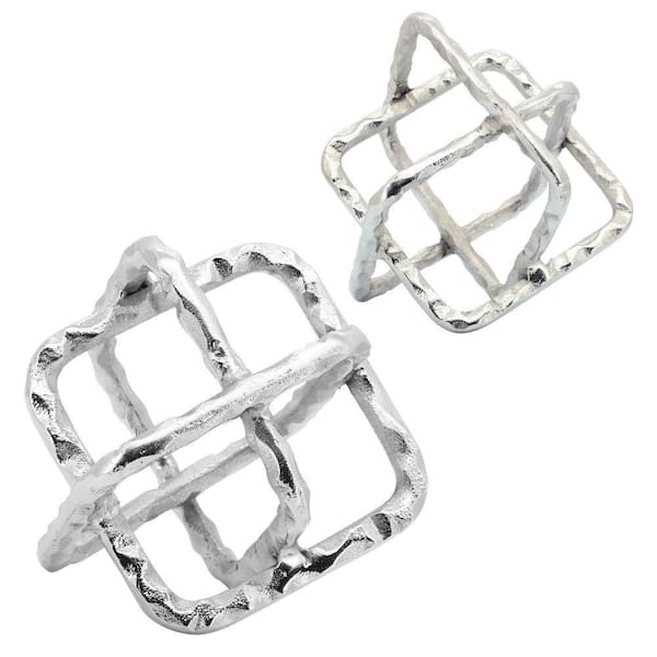 Silver 8 in. x 8 in. Metal Square Orb Sculpture