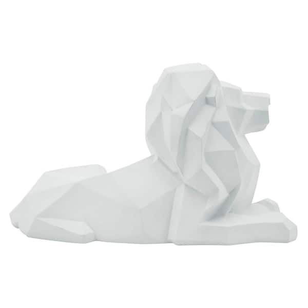 White 13 in. x 8 in. Resin Modern Geometric Laying Lion Sculpture