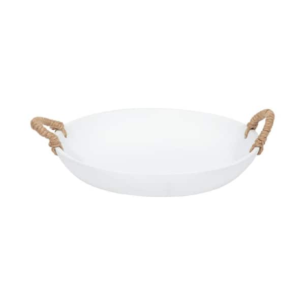 White 17 in. Ceramic Round Decorative Bowl with Woven Handles