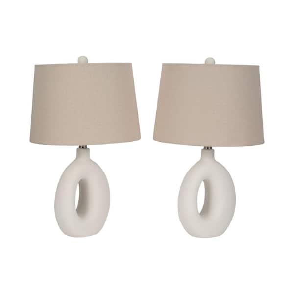 White 23 in. Ceramic Open Cut Out Table Lamp Set and Beige Linen Shade (Set of 2)