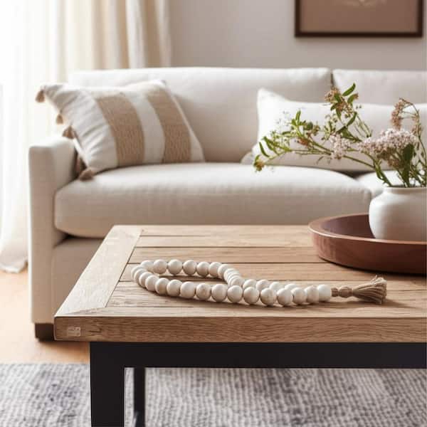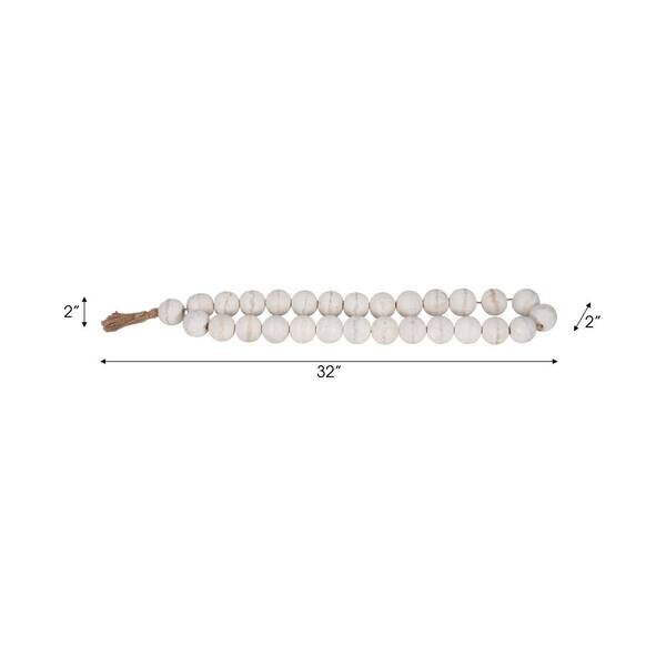White 32 in. 2 in. Wood Double Beaded Garland