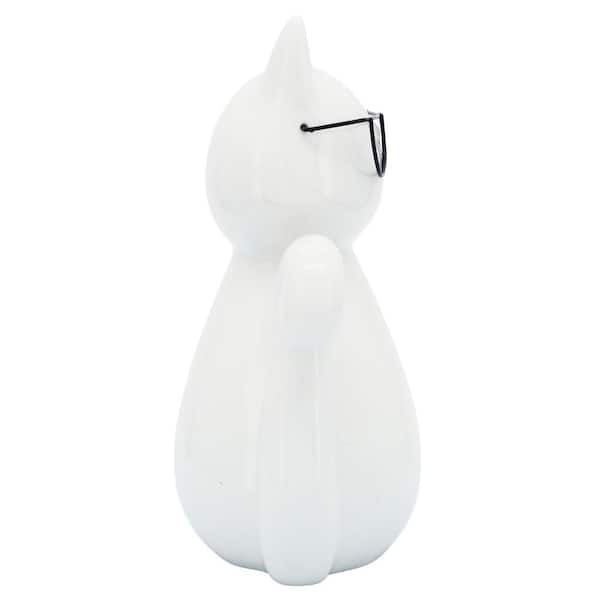 White 5 in. x 7 in. Stoneware Cat with Glasses Figurine