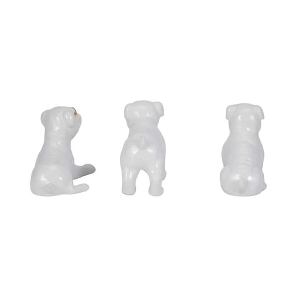 White 7 in. x 6 in. Stoneware Pugs with Sunglasses Figurines (Set of 3)
