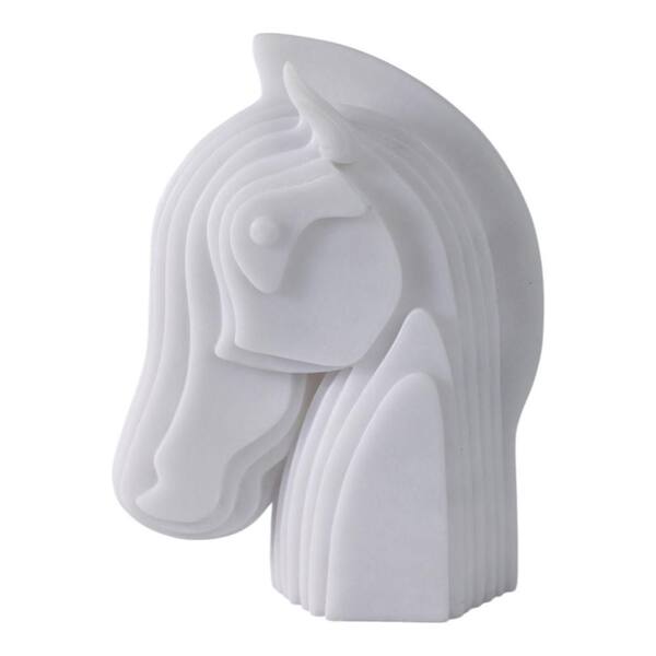 White 9.5 in. x 12 in. Resin Layered Modern Horse Head Sculpture