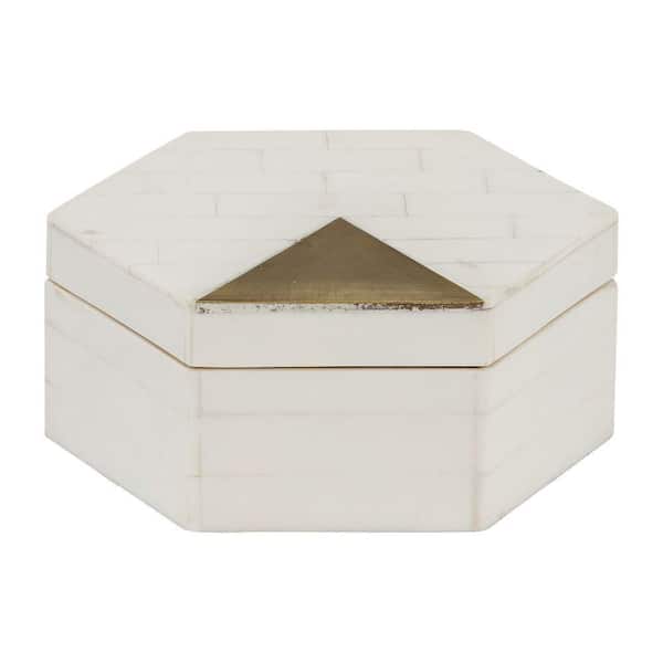 White/Gold 5/7 in. Resin with Brass Inlay Decorative Box (Set of 2)