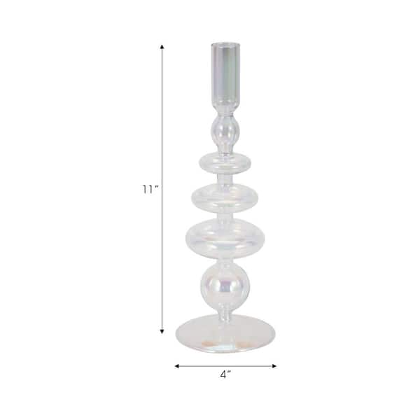 White Luster 11 in. Vintage Glass Taper Candle Holder