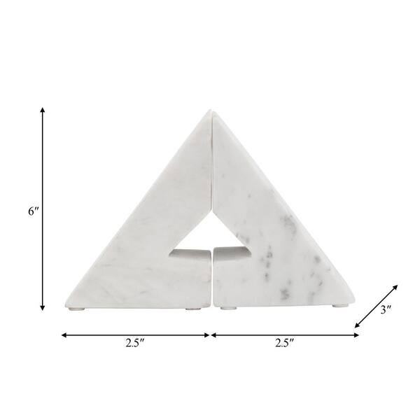 White Marble Right Triangle Bookends (Set of 2)