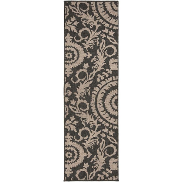 Big Pine Black 2 ft. x 8 ft. Indoor/Outdoor Patio Runner Rug