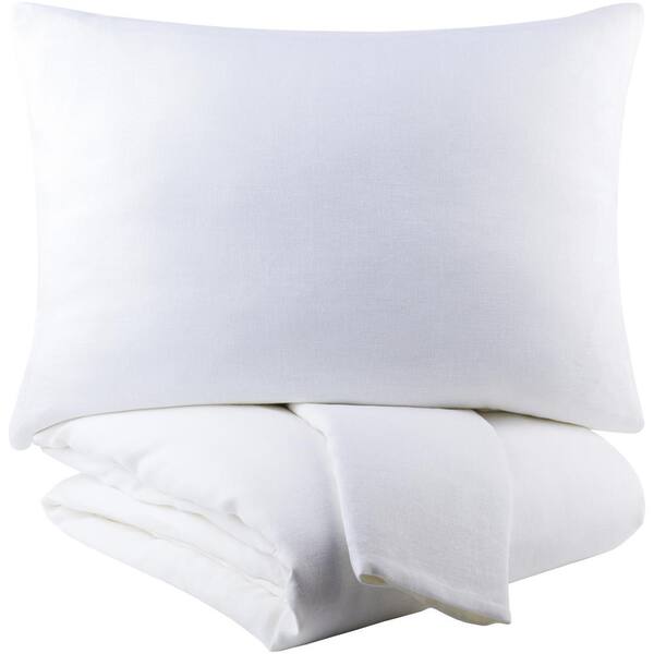 Chandler 1-Piece White Solid Color 26 in. H x 26 in. W Linen/Cotton Euro Sham Duvet Machine-Washable Cover Set