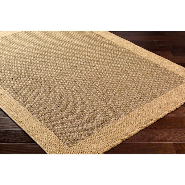• 5 x 7 indoor/outdoor area rug, with a tan cottage style
