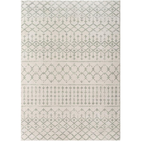 Roma Cream/Medium Green/Gray Global 7 ft. x 9 ft. Indoor Area Rug