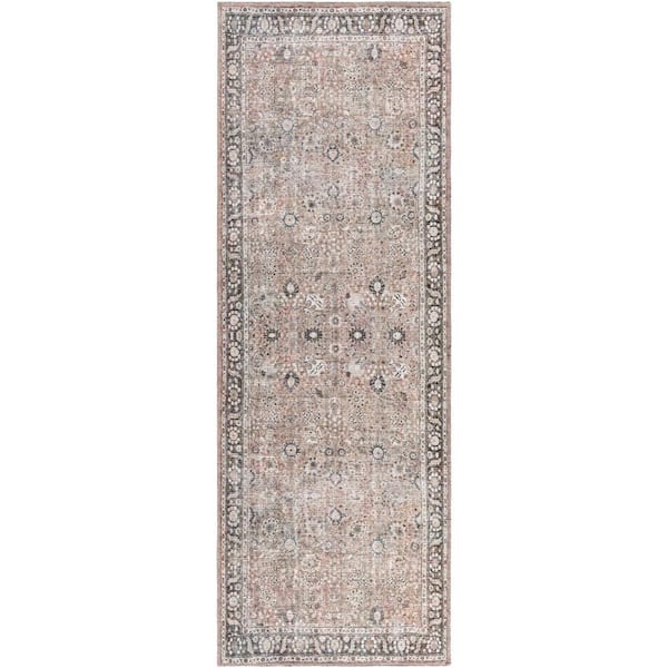 Vernon Taupe/Rose 3 ft. x 7 ft. Indoor Machine-Washable Area Rug