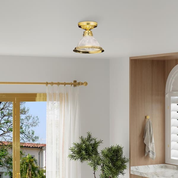 Basic Ceiling Mount 7.5 in. 1-Light Polished Brass Flush Mount
