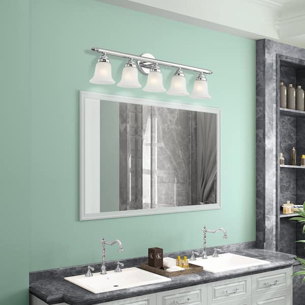 Esterbrook 32 in. 5-Light Polished Chrome Vanity Light with White Alabaster Glass